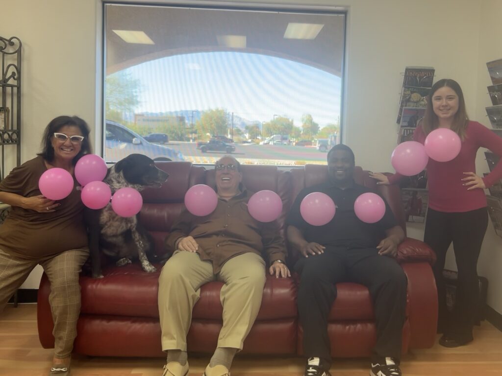 October is Breast Cancer Awareness Month, and our team wanted to do something a little different to show our support — something fun, heartfelt, and memorable. Inspired by a viral “Get those puppies checked!” meme, we decided to put our own spin on it… with a few pink balloons, lots of laughs, and even a special appearance from our furry friend, Ruger!